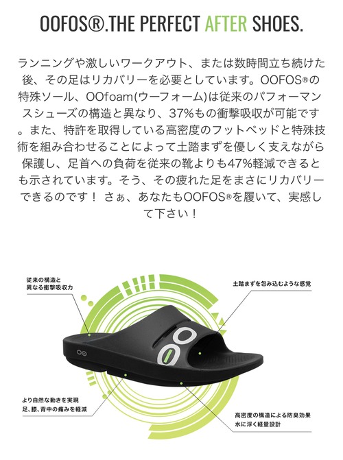 リカバリーシューズのパイオニアと呼ばれるOOFOSの履き心地を是非体感してください。